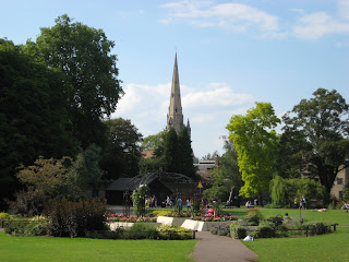 After settling in I then took a long walk around Cambridge to orient myself (and force myself to stay awake for a few more hours!). I ate bruschetta at a place called Giraffe on a lovely green called Christ's Pieces (behind Emmanuel College) and later picked up a San Pellegrino Limonata from Caffe Nero along King's Parade. I can already tell food is going to be one of the best components of this programme! In any case, I instantly fell in love with the city. So much gorgeous architecture, such charming, trendy stores (including a really nice indoor mall), so many delicious places to eat and coffee shops to choose from. The city was especially busy tonight due to all the tourists and possibly a graduation at Queen's College (I saw some hats being thrown in the air and a milling crowd from a distance). I was able to visit several college courtyards, key churches, stores (e.g. Cambridge University Bookstore), and the River Cam, where I saw many people trying their hand at punting! Meanwhile the majority sat on the riverbank having a picnic and beer and heckling them... Although I wasn't able to actually go inside Bodley's Court because King's College closed for the public today, I can already tell that it is by far the best college architecturally, as well as having the best view of the River. I can't wait to move in tomorrow!